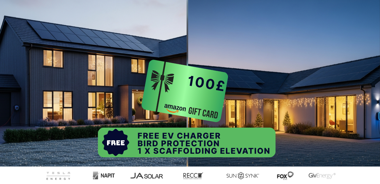 Whether you’re after a smart starter system or a high-capacity setup for energy independence, these packages deliver serious savings and premium components designed for British homes — with a FREE EV charger, bird protection, scaffolding, and a £100 Amazon voucher if you book before Christmas.